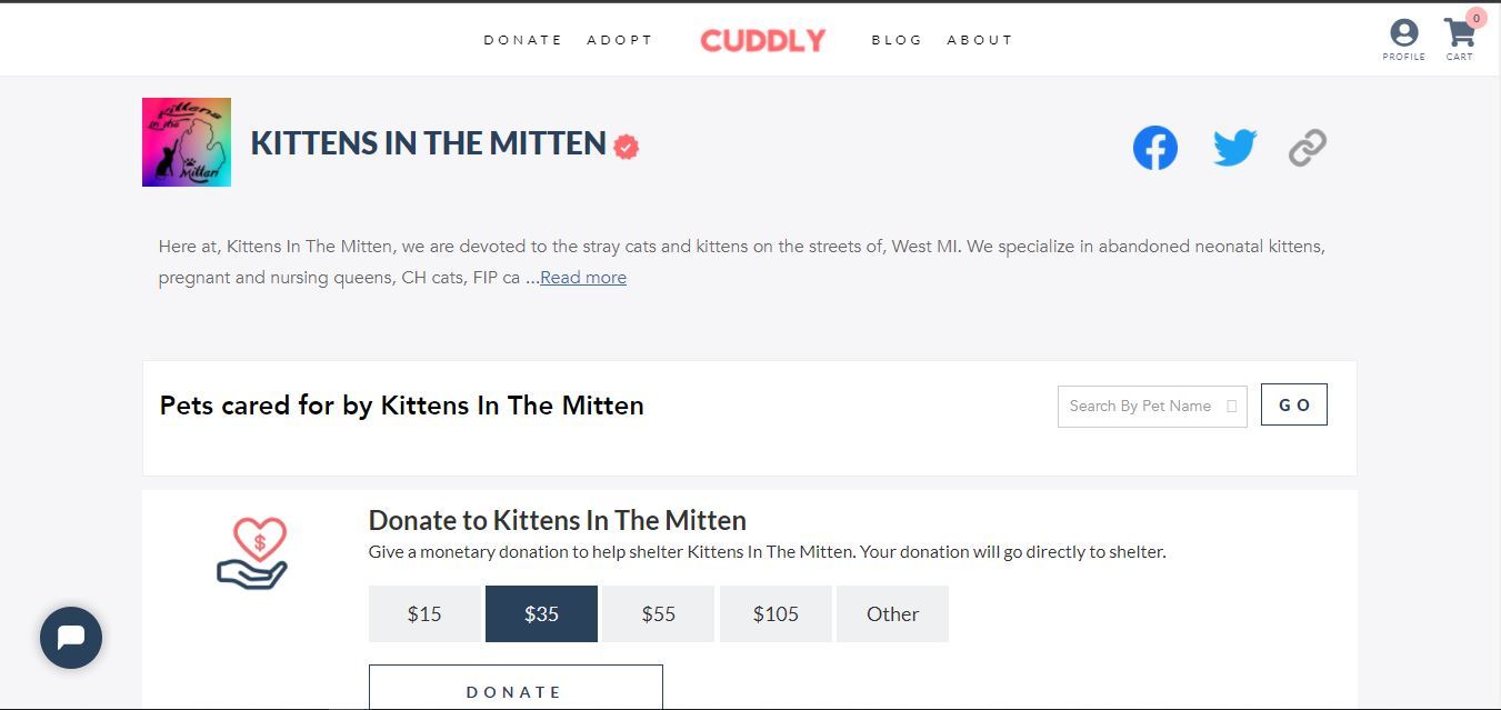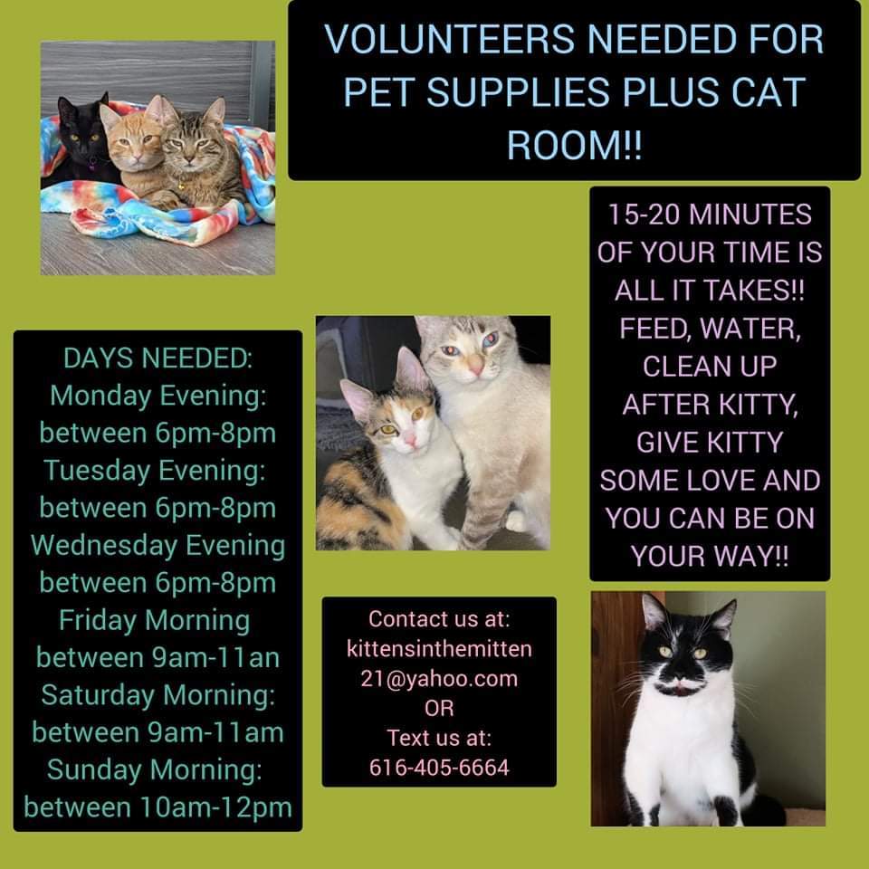 Kittens In The Mitten, Inc., depends solely on donations and volunteers.